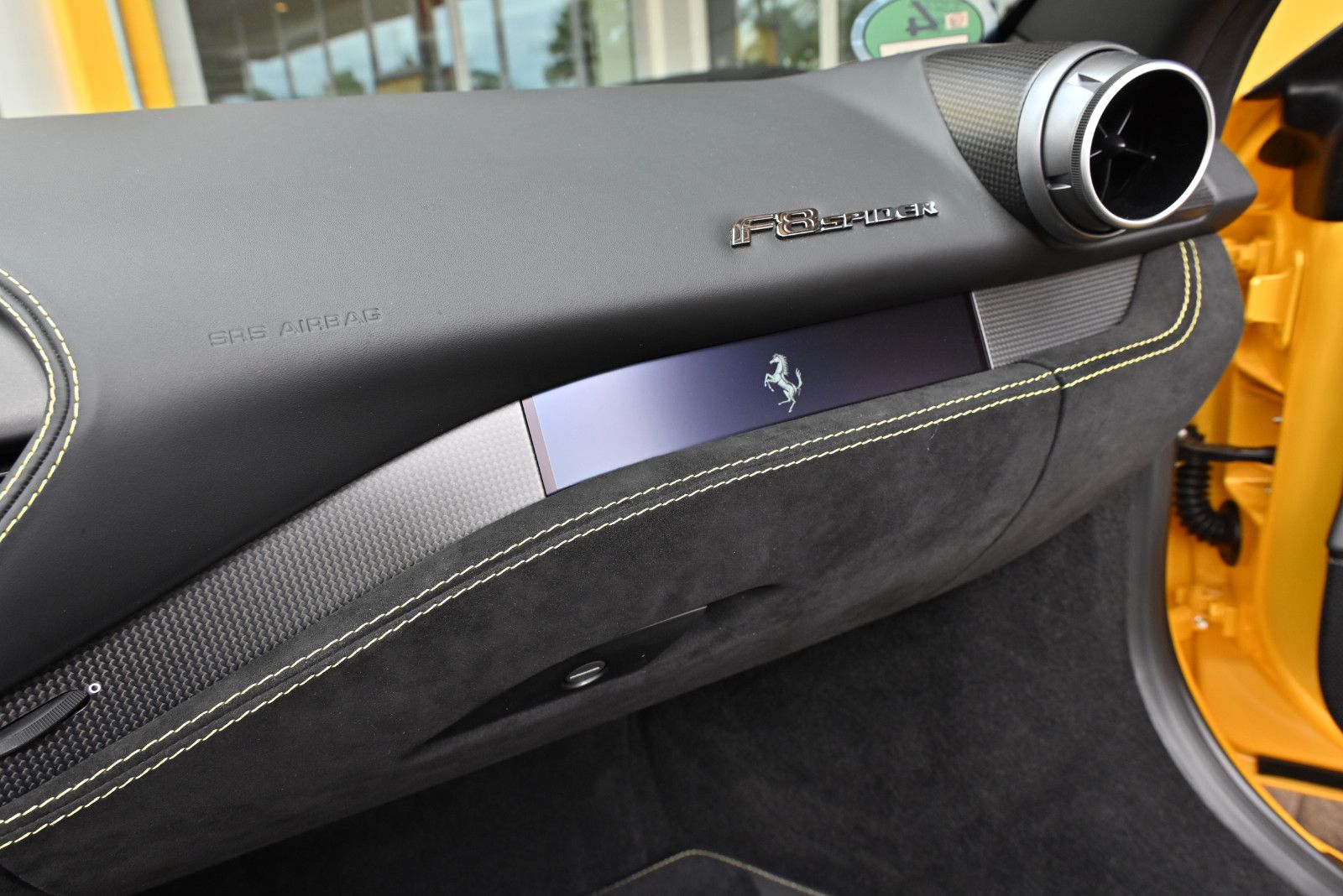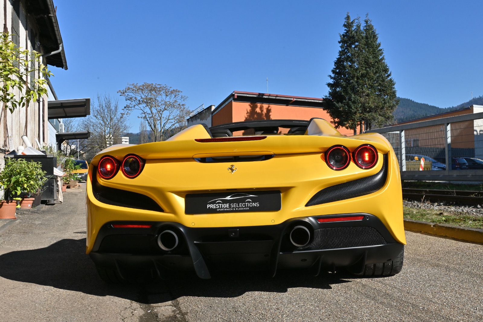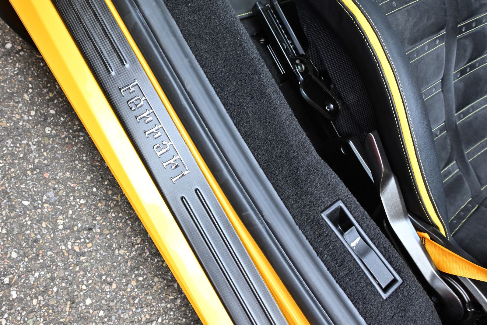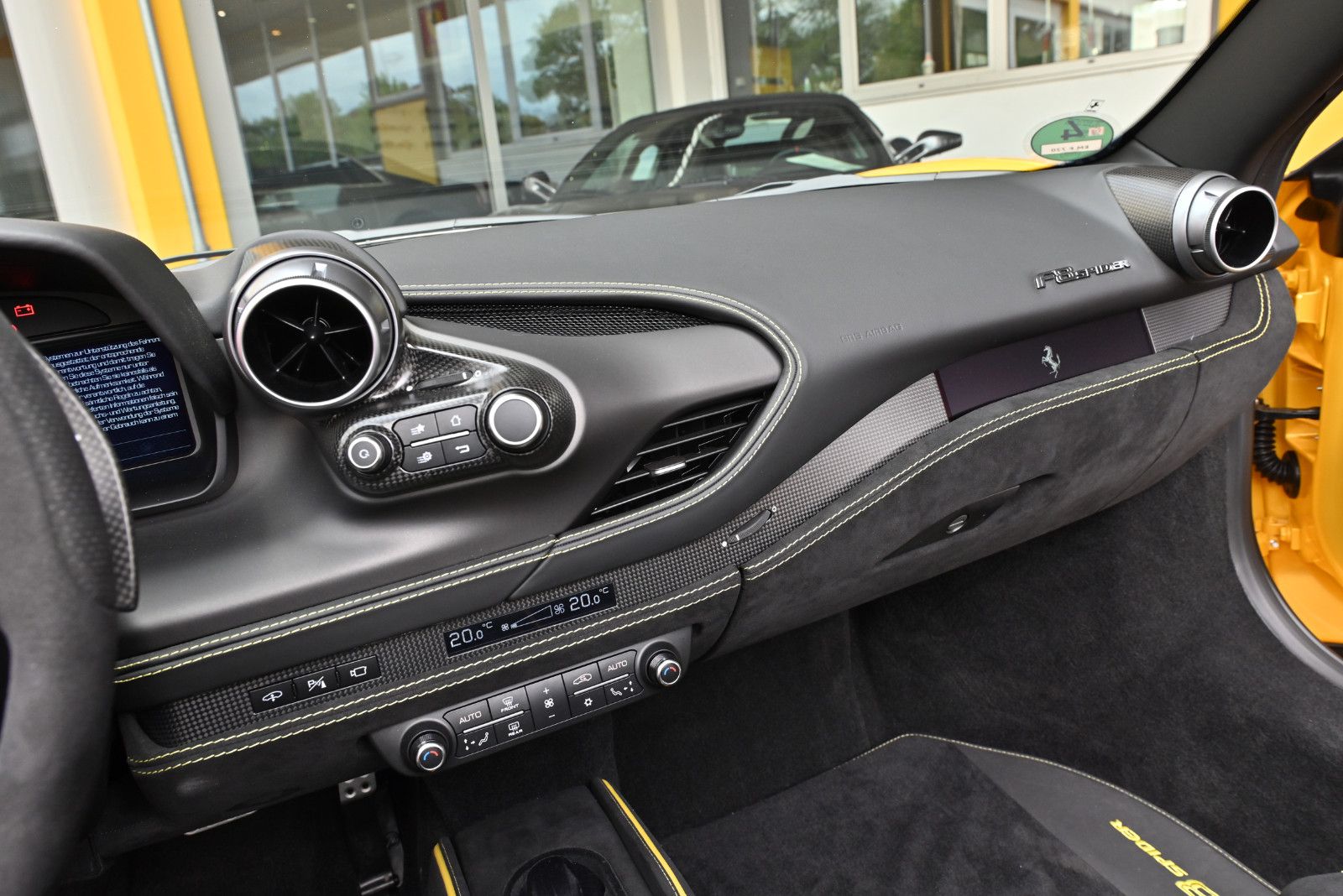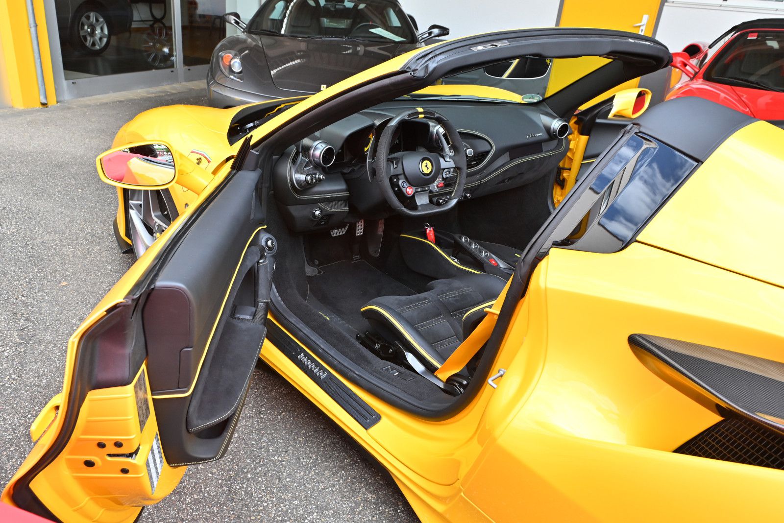 Das sagehafte Giallo Triple Strato leuchetet nobel-sportlich, die großen handlackierten Scudetti sind typisch für die rassigen Ferrari der 1950/60ger, die Schalensitze und das viele Alcantara, sowie das matte Carbon im Interieur verkörpern den Motorsport! Der zentriert lackierte Mittelstrich auf dem Lenkrad - genauso aus dem Motorsport...dieses F8 Spider ist sicher einer der einmaligsten je gebauten F8 Spider & verkörpert durch & durch wofür diese Baureihe stand: rassiger Motorsport!